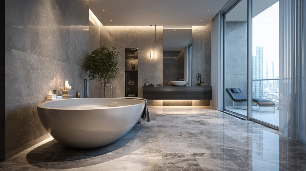 Most bathroom projects fall into this category. This remodel includes replacing the tub or shower, installing natural stone tiles or porcelain tile, adding custom features such as storage niches, upgrading light fixtures, and improving ventilation. The realistic budget is $12,000 to $20,000.
