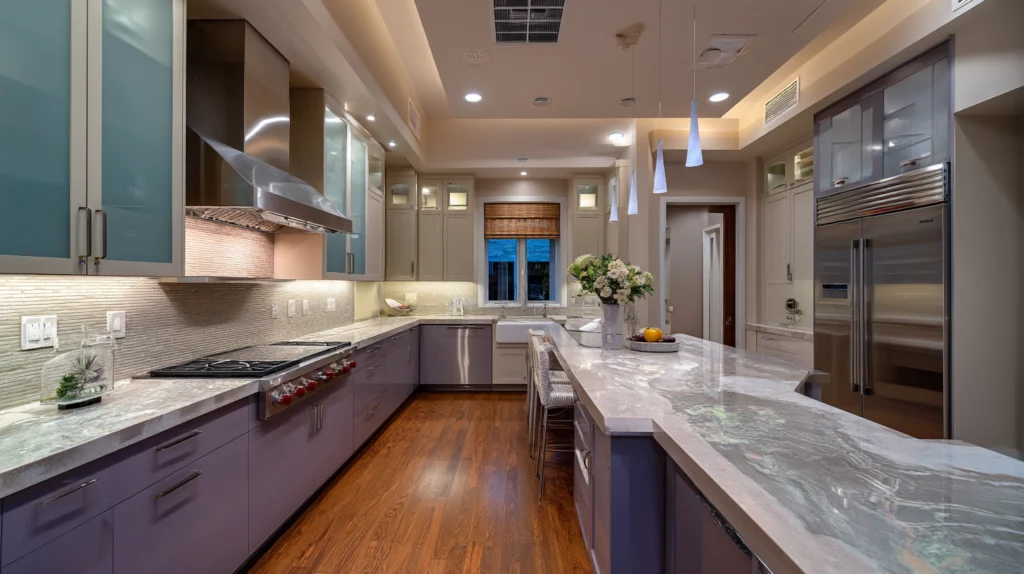 Floor-to-ceiling cabinets provide some of the most effective storage solutions available. These cabinets reach the walls all the way to the ceiling, creating more space for items you do not use every day. This idea keeps the kitchen clean and organized while reducing dust collection. For homeowners with smaller kitchens, tall cabinets can make the room feel larger and more structured. This layout creates visual continuity and brings a custom-built feeling into the space.